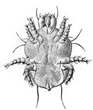 ovaj parazit živi ispod kože i hrani se limfnom i tekućinom ćelija. Zarije se pod kožu i tamo buši kanale što uzrokuje intezivan svrab. U stručnim knjigama se može pročitati da se ova vrsta parazita nastani prvo na ustima i na nosnicama. Iskustva pokazuju pak da to ne mora biti pravilo, jer se budu napadnuta i samo leđa i to na zadnjem dijelu.
